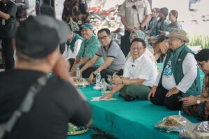 | Cak Imin berdialog dengan para petani di Kabupaten Madiun, Jawa Timur, Sabtu (30/12/2023). |